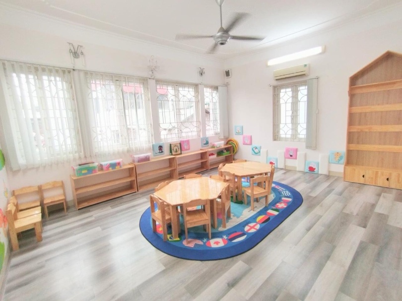 - Cơ sở vật chất đầu tư bài bản, khang trang, sạch đẹp, có camera để phụ huynh quan sát trực tiếp, có màn hình tương tác phục vụ cho các tiết học.